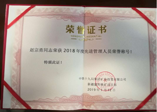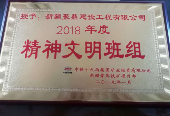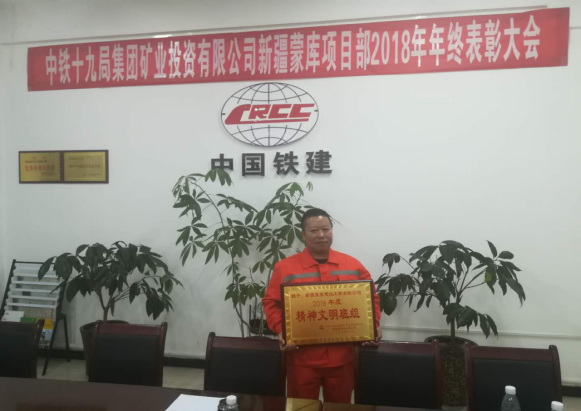 1月13日,中鐵十九局集團投資有限公司新疆蒙庫鐵礦項目部召開2018年度精神文明工作會議及年度表彰大會,我單位為精神文明活動深入發(fā)展做出積極貢獻受到表彰。我單位被授予2018年度精神文明班組稱號。